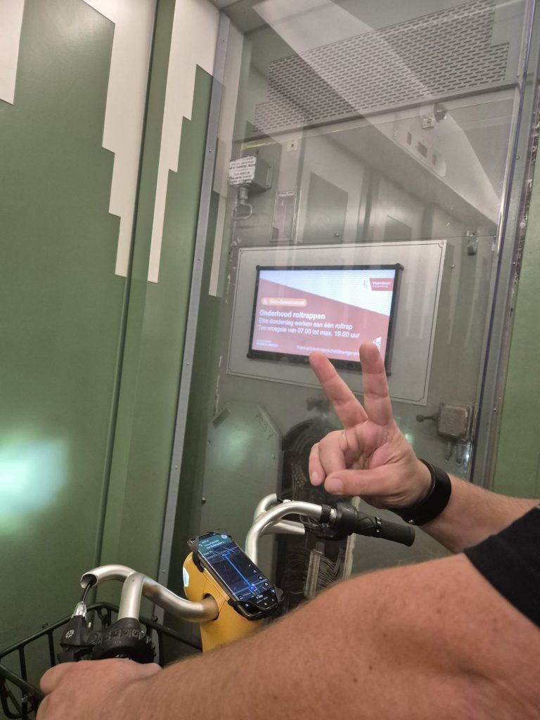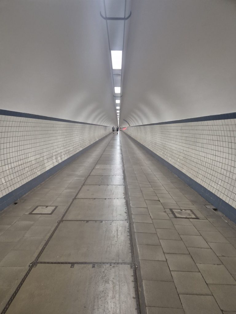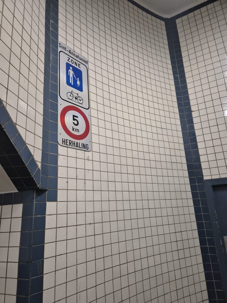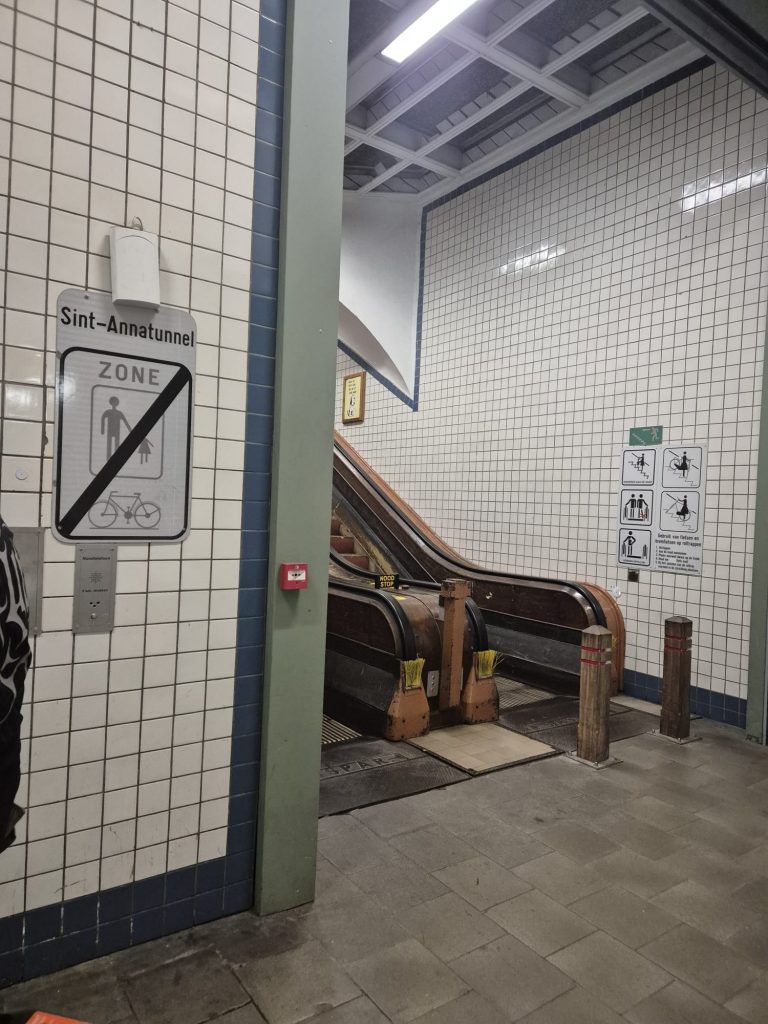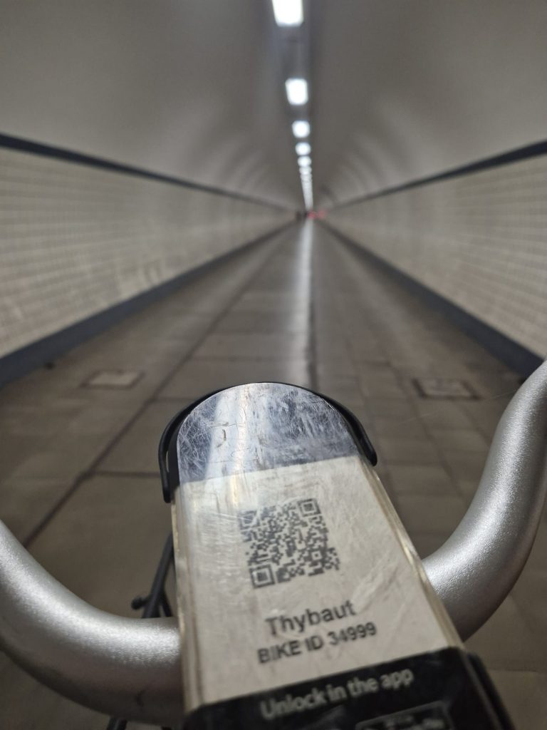 Das Konzert war einfach mega, die Location passte wirklich super. Nach einem letzten Drink dort schwingen wir uns auf die Räder und düsen zurück zu unserem Platz. Da die Fähre schon Feierabend hat, nehmen wir den Tunnel, um unter der Schelde entlang zu fahren, inkl. Fahrstuhl