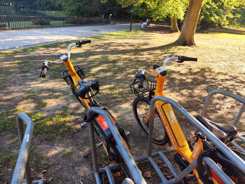 Dort angekommen buchen wir beim Anbieter Donkey Republic zwei E-Bikes, mit denen wir in Richtung des Veranstaltungsortes aufbrechen.