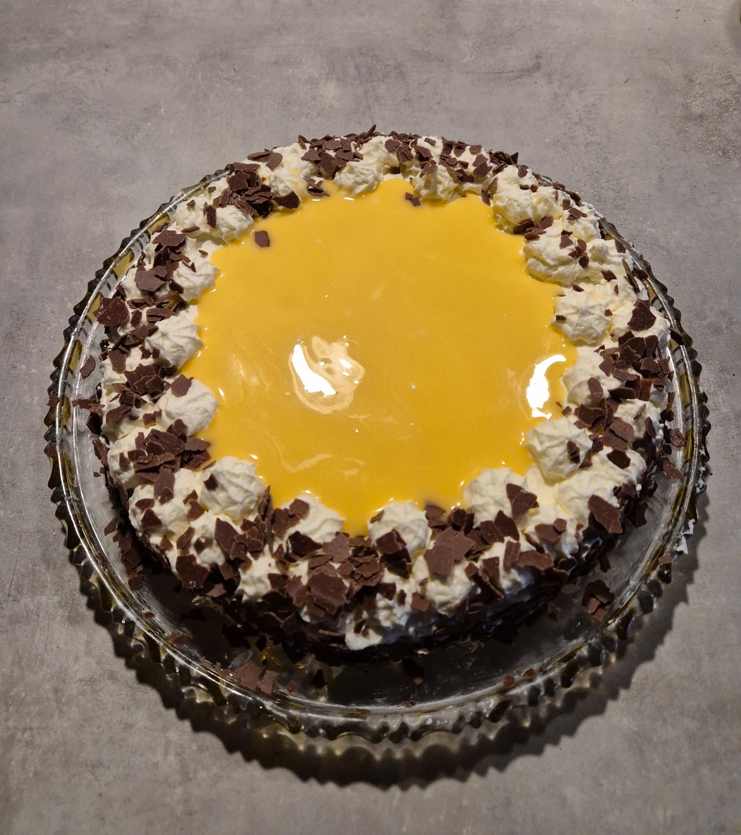 8. Den restlichen Eierlikör in die Mitte der Torte gießen und verlaufen lassen.