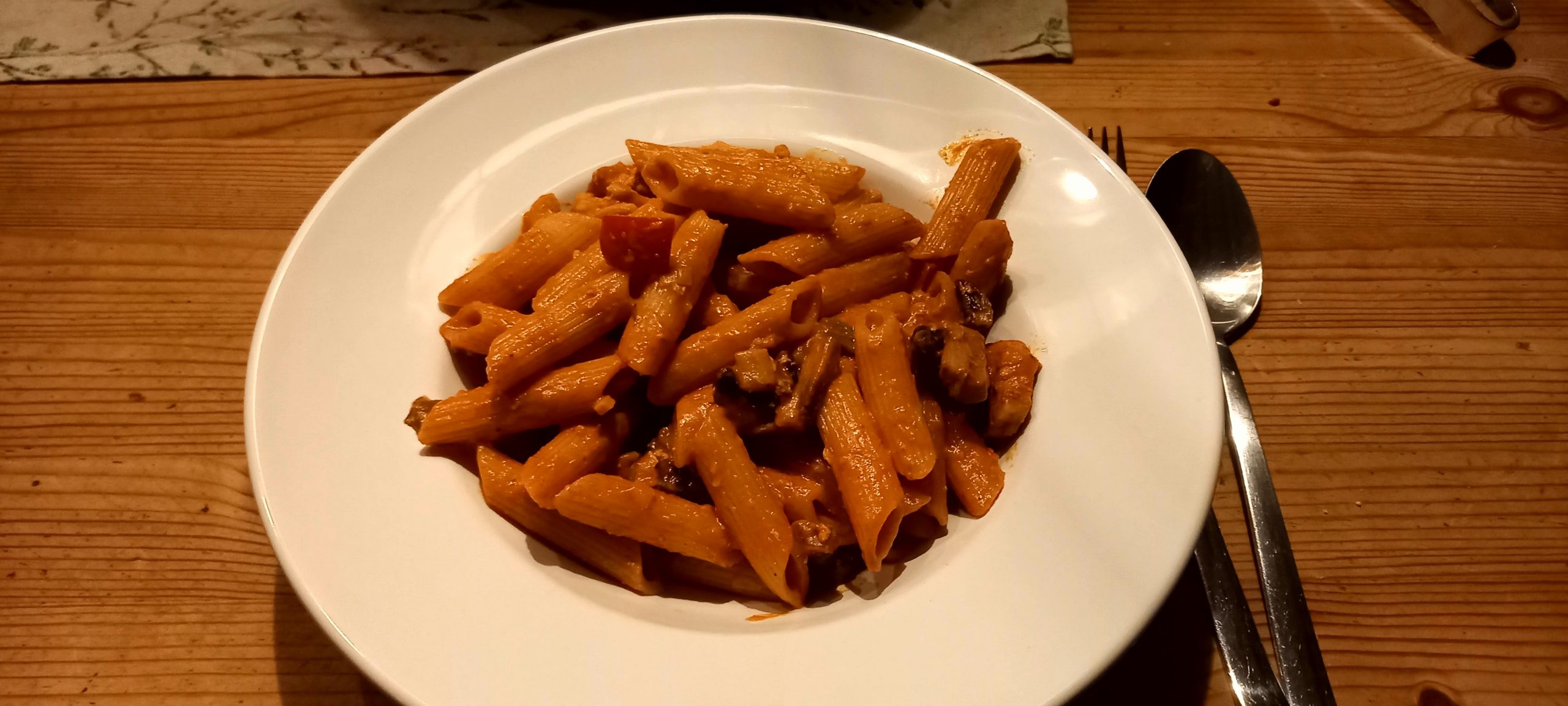 Bis die Nudeln fertig sind, weiter köcheln lassen. Diese dann abgießen und untermischen. Noch 1 – 2 Minuten ziehen lassen und dann servieren.